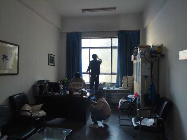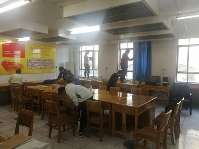 在学生党员的模范带动下,各位党支部成员有序地进行分组、分工、分工具,在一切准备就绪后,大家投入到卫生清洁中。擦玻璃、整理桌子、拖地板……在互相配合中,活动变得欢快和高效,面对桌面一堆堆文件和材料,大家耐心地梳理,将他们在不打乱的前提下进行合理地分类整理;看着擦了好几遍的窗户还是不够干净,大家反复用搓洗,用报纸擦干,尽可能使得手所能触及的地方变干净。最后,大家把地板清扫拖洗后带着汗水离开。