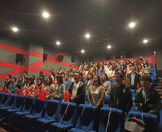 10月1日中午,老师和同学们于东方好莱坞影城观看了以抗美援朝为背景的红色电影《长津湖》。影片讲述了71年前中国人民志愿军赴朝作战,在极寒、缺粮的严酷环境下,东线作战部队凭借钢铁般的意志和英勇无畏的战斗精神一路追击,奋勇杀敌,扭转了战场态势、打出了军威国威的故事。在观影过程中,志愿军战士与敌军激烈搏杀的画面牵动着观影的老师和同学们的心,当看到志愿军战士为掩护大部队前进牺牲自己、即便自己已经饥肠辘辘也要坚持把粮食留给战友的情节时,大家都热泪盈眶。影片结束,老师和同学们全体起立,齐唱国歌,为祖国母亲的72岁生日送上最真挚的祝福。